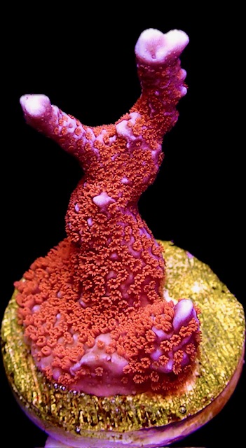 A stunning montipora with bright orange polyps and a blueish body that grows in a beautiful branching formation, with thick branches frags will be approx 30-40mm