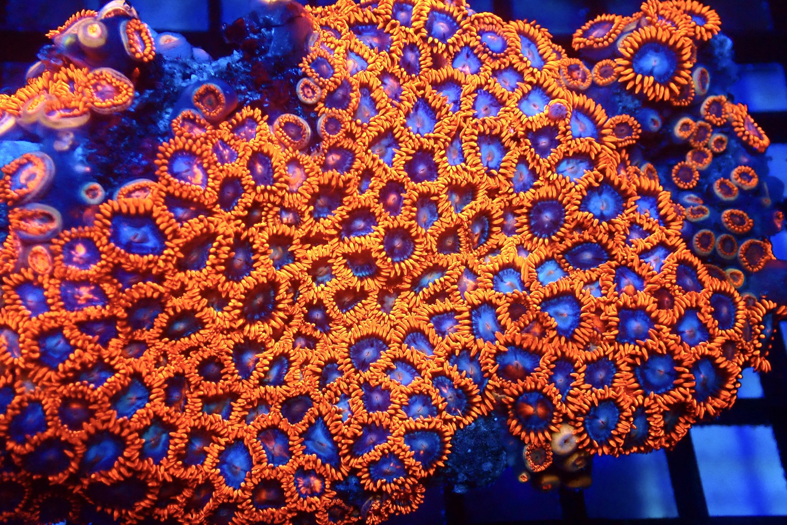 A beautiful coloured zoanthid frag. All frags will vary slightly in size, will have approximately 12 + polyps and will be from the exact species pictured. These will spread rapidly and in a carpet like formation over your rockwork giving a beautiful and colourful effect. A great soft coral for the beginner and expert alike. They are very easy to care for and need no special care other than good water parameters. Picture is taken under Led lighting
