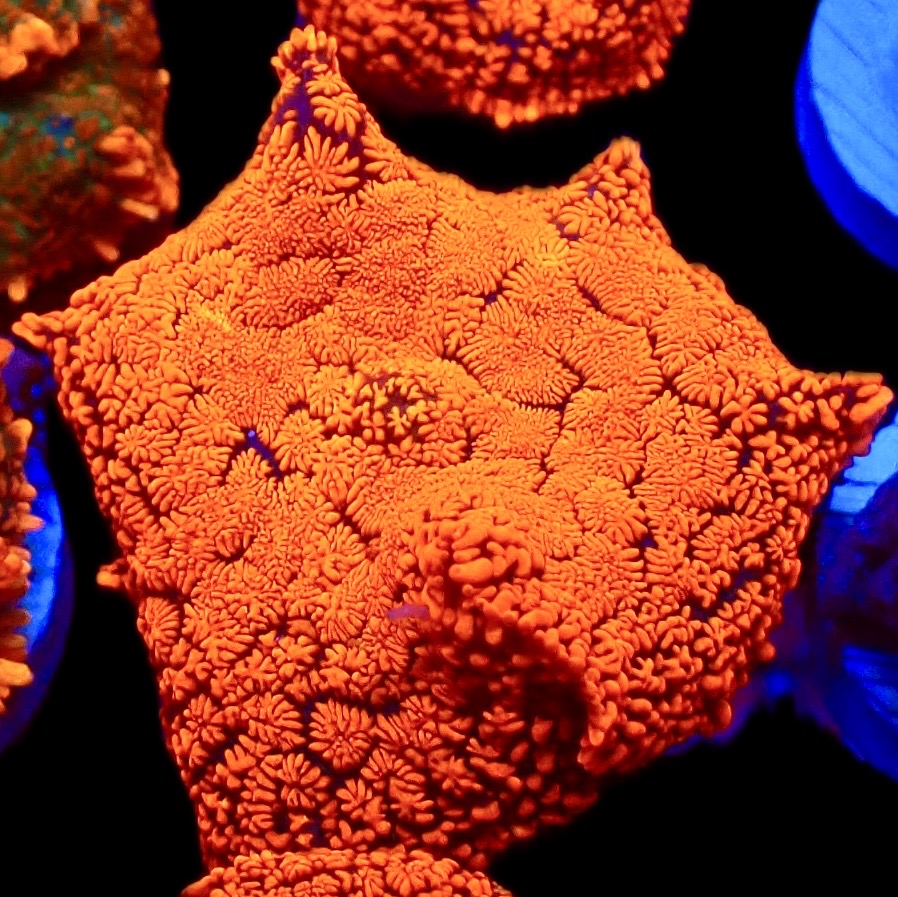 A stunningly bright mushroom that glows in the aquarium. Vibrant Red / Blue colouration