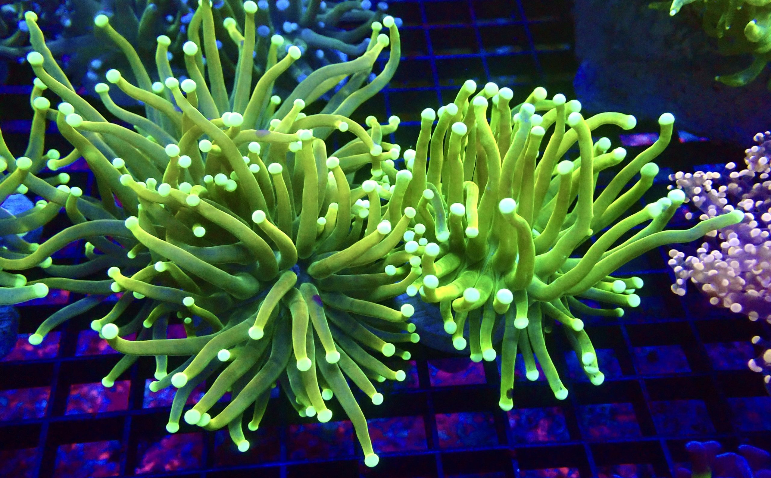 A stunning metallic green with fluorescent coloured polyps which also have a tinge of Gold , this Euphyllia glabrescens torch coral is super bright and will make a great addition to your aquarium.