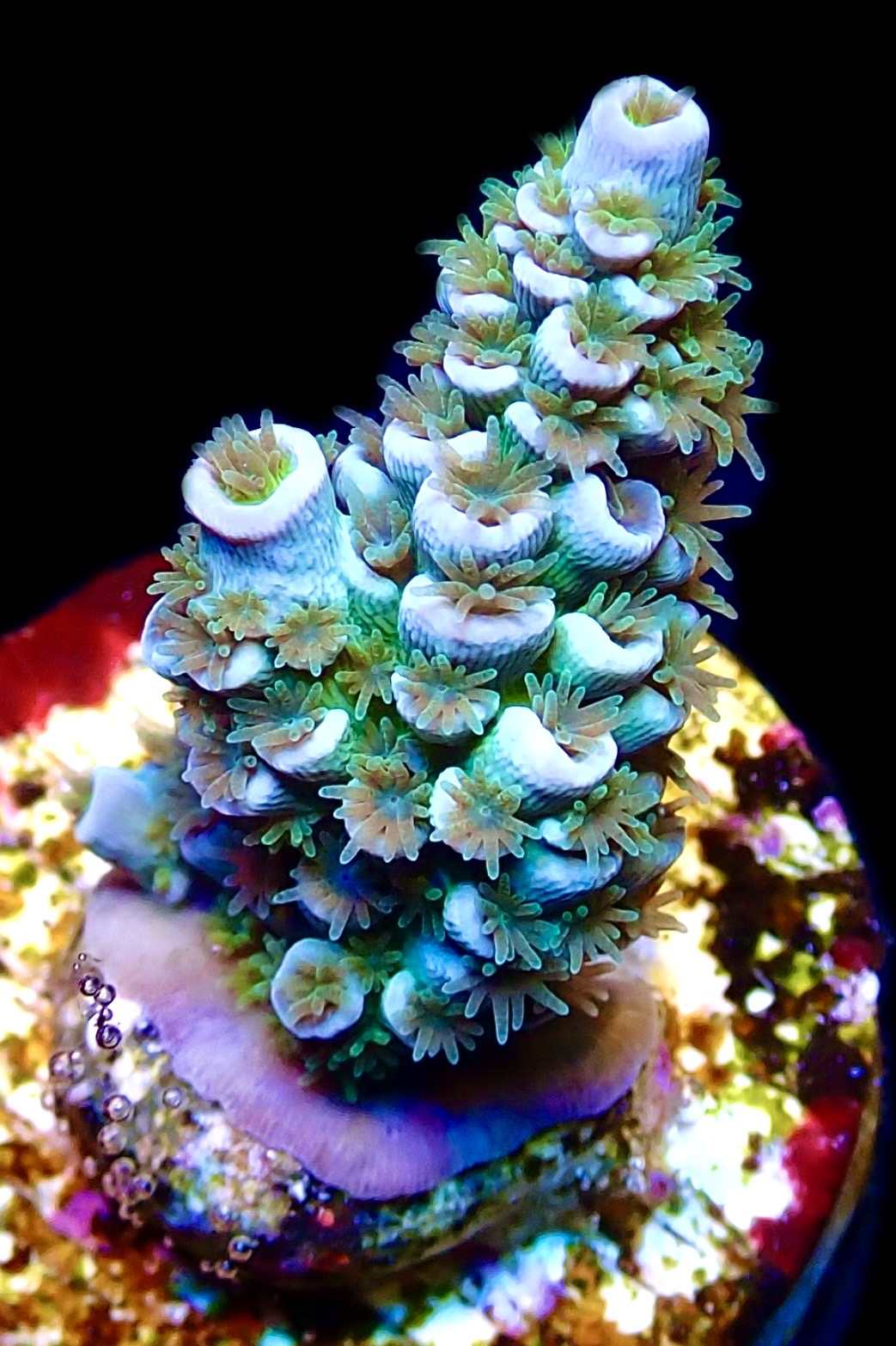 Water Conditions: 24-27 °C, dKH 8-12, pH 8.1-8.4, sg 1.023-1.025, Calc 400-450