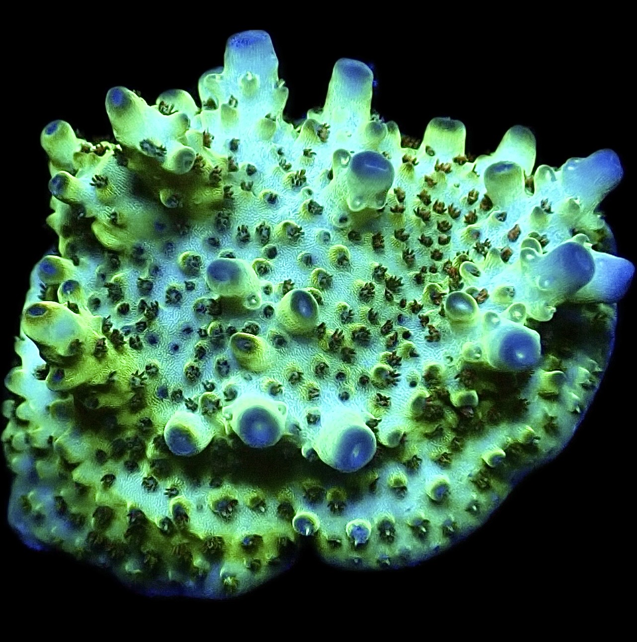 A beautiful Tabling Acropora with a pastel neon green base with purple corallites. All frags are well rested and taken from our on farm mother colonies which have been with us for many years so much hardier and more forgiving under captive conditions than fresh cut imports.