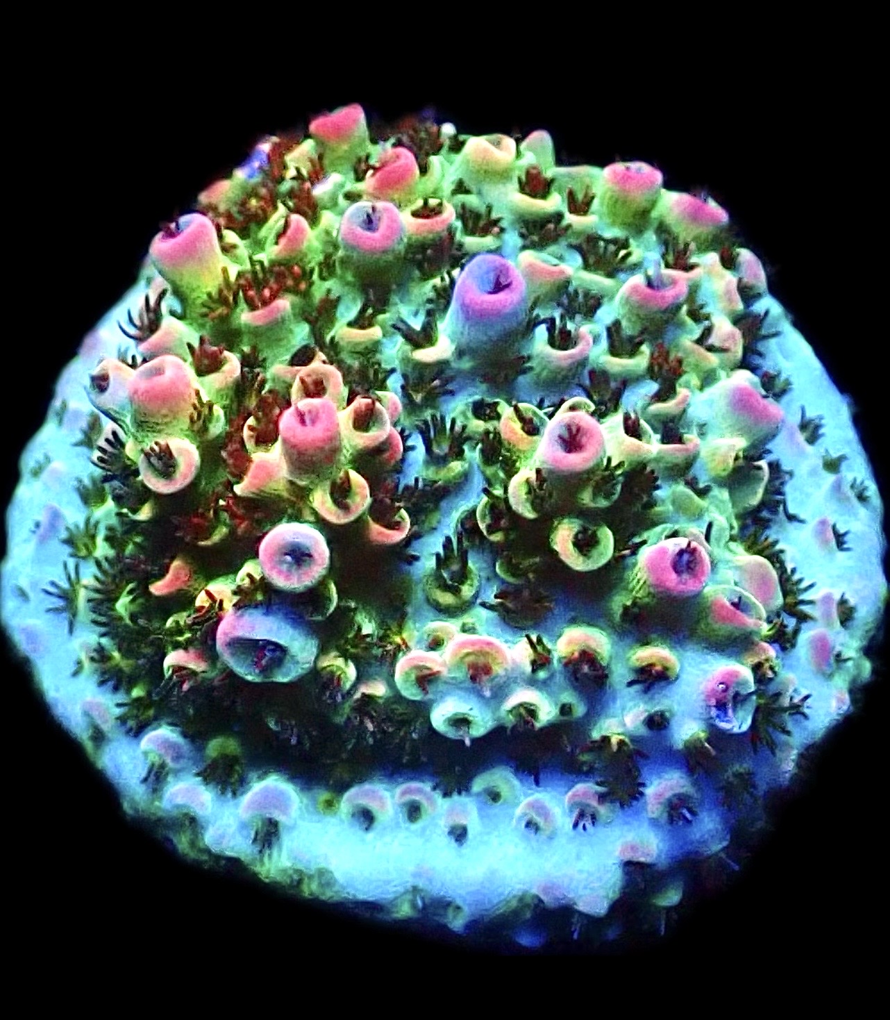 Not often we frag our Mother Colonies of this special Acropora, a real collectors species with Pink, Purple, Orange and Green being the main colours that will develop as it matures. We have also added a picture of one of our Mother Colonies so you can see the full beauty of this species.