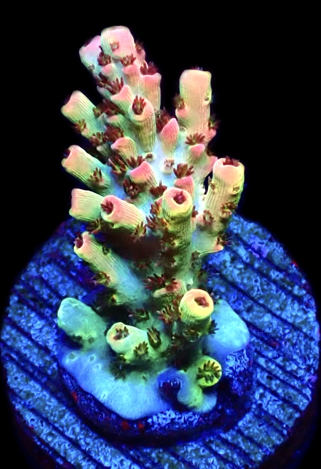 Not often we frag our Mother Colonies of this special Acropora, a real collectors species with Pink, Purple, Orange and Green being the main colours that will develop as it matures. We have also added a picture of one of our Mother Colonies so you can see the full beauty of this species.