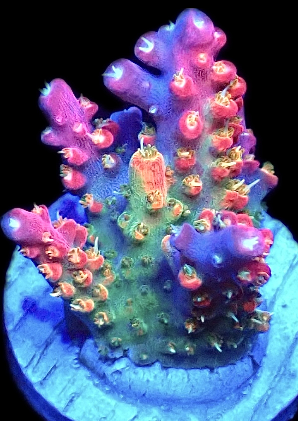 One for the real SPS enthusiasts, a real stunner of an Acropora, cultivated from our own Indonesian mother colony that has been with us for over ten years. Tank hardened, full coloured frags which have been well rested before offered up for sale.