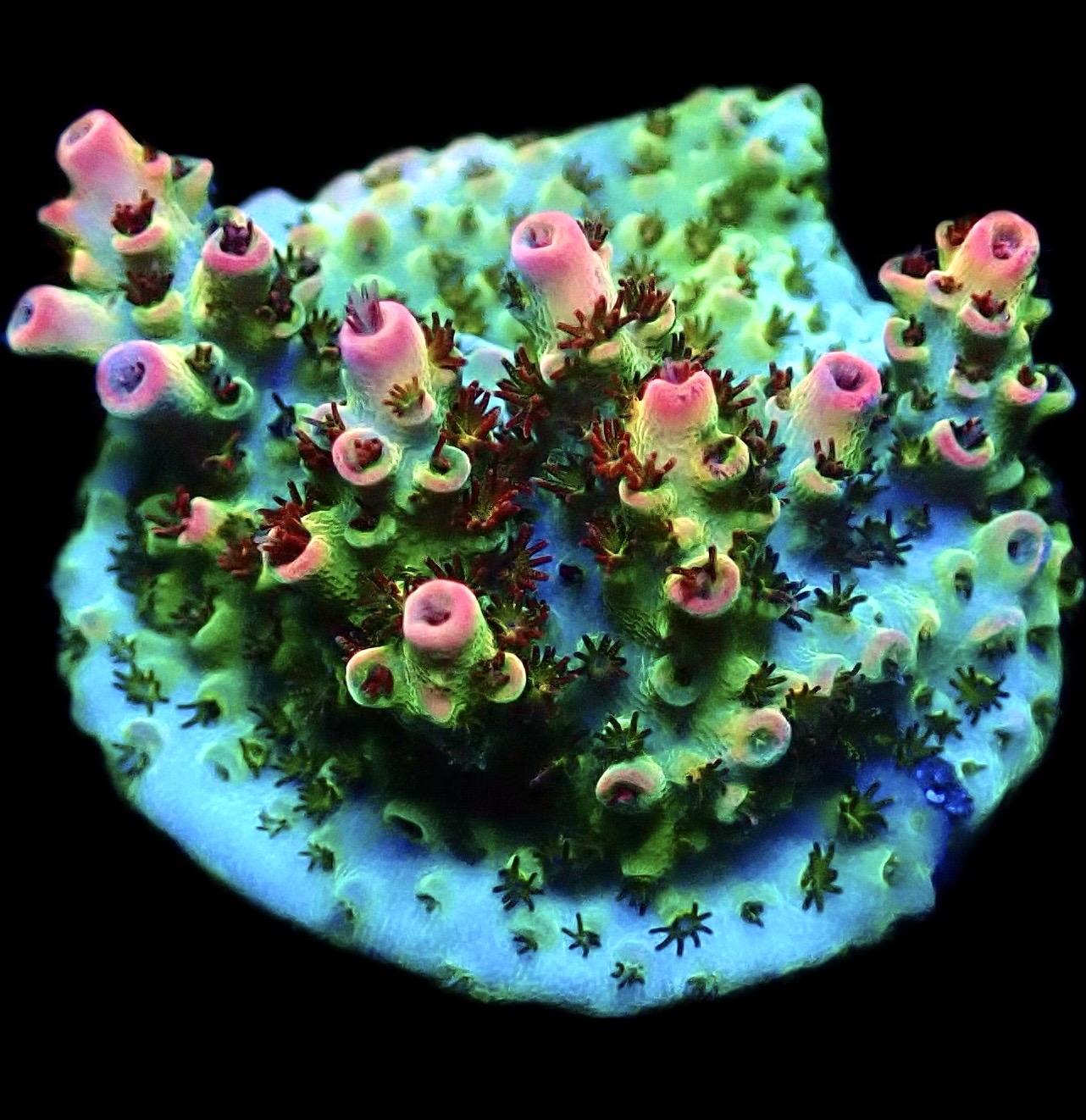 Not often we frag our Mother Colonies of this special Acropora, a real collectors species with Pink, Purple, Orange and Green being the main colours that will develop as it matures. We have also added a picture of one of our Mother Colonies so you can see the full beauty of this species.