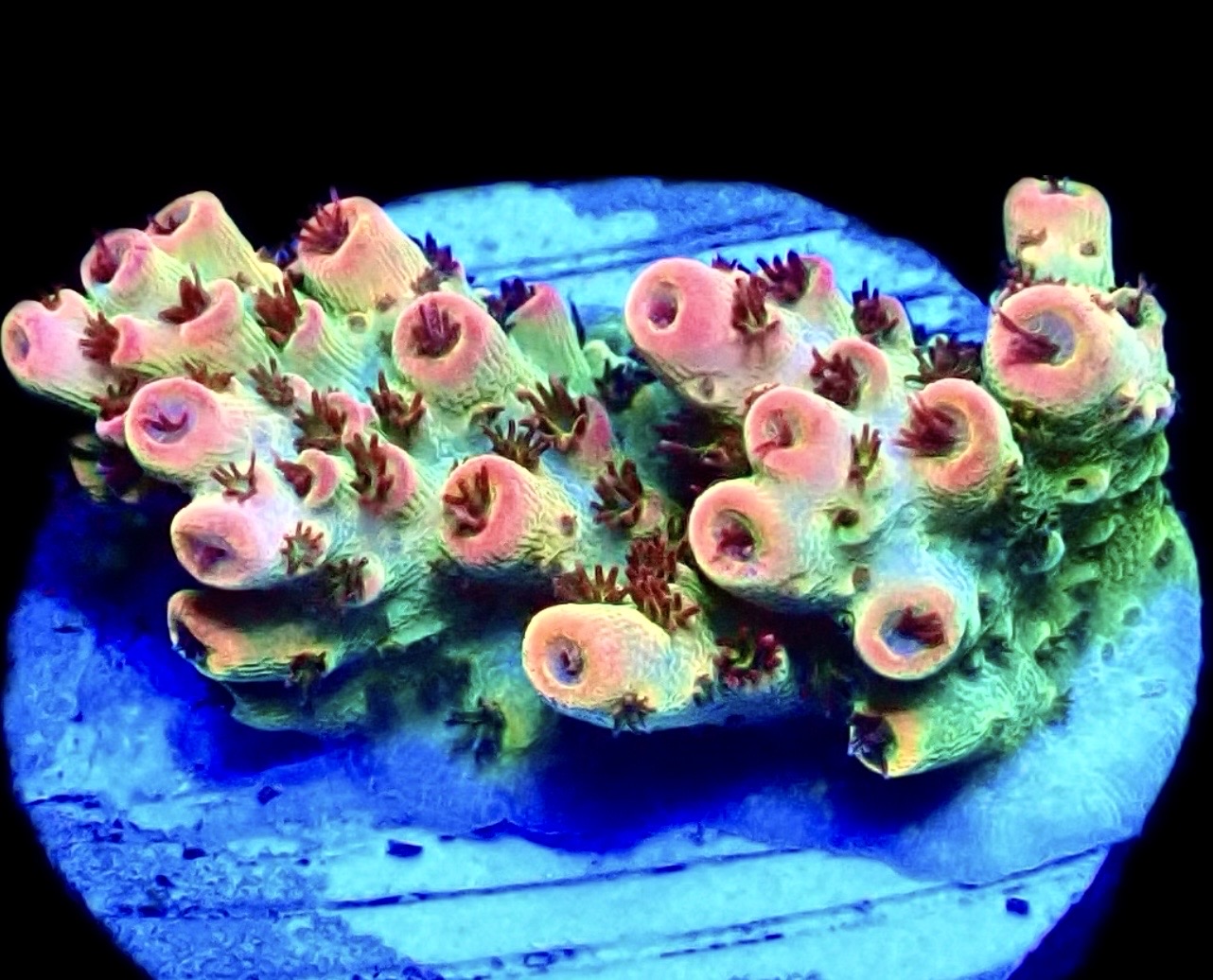 Not often we frag our Mother Colonies of this special Acropora, a real collectors species with Pink, Purple, Orange and Green being the main colours that will develop as it matures. We have also added a picture of one of our Mother Colonies so you can see the full beauty of this species.