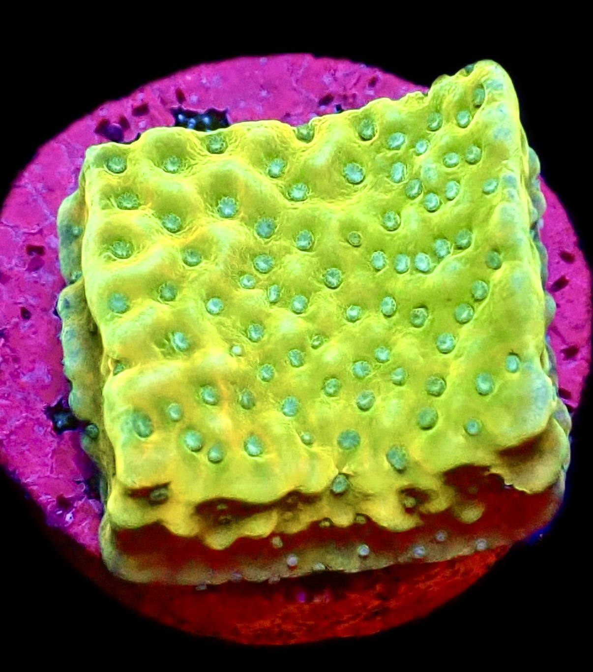 A very rare chance to own one of the most beautiful Montiporas there is , these are truly stunning with toxic orange, yellow and green colouration. A reasonably fast grower once settled and one of the brightest corals in our display tank.