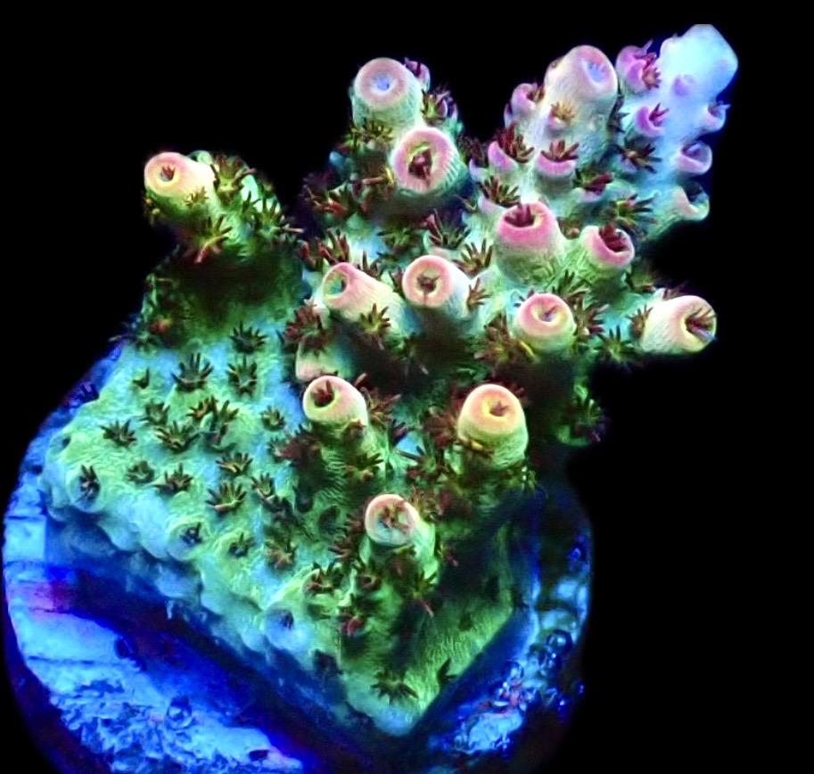 Not often we frag our Mother Colonies of this special Acropora, a real collectors species with Pink, Purple, Orange and Green being the main colours that will develop as it matures. We have included a picture of one of our mother colonies so as you can see how spectacular this species is once grown out.