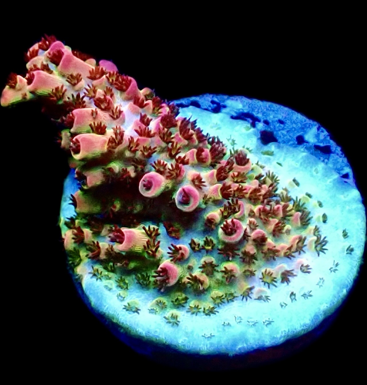 Not often we frag our Mother Colonies of this special Acropora, a real collectors species with Pink, Purple, Orange and Green being the main colours that will develop as it matures. We have also added a picture of one of our Mother Colonies so you can see the full beauty of this species.