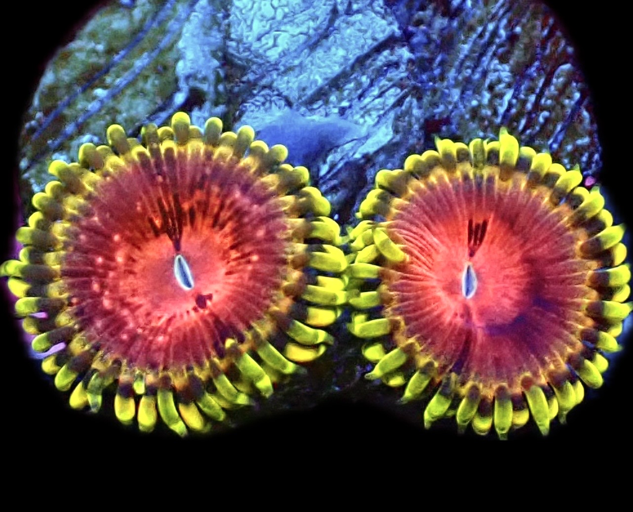 These are large polyps of this stunning high end coloured zoanthid. These will spread rapidly and in a carpet like formation over your rockwork giving a beautiful and colourful effect. A great soft coral for the beginner and expert alike.