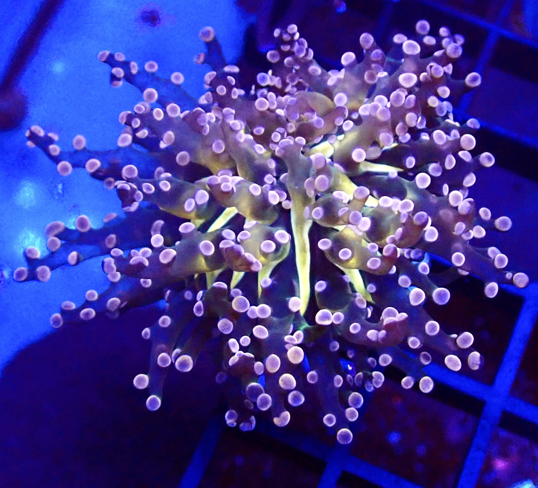 A stunning LPS coral with the most beautiful pink colouration am]nd yellow base, this Euphyllia paradivisa frogspawn coral frag will develop new heads quickly.. It will add superb movement in your reef as the polyps move with the current and extend to catch food from the water column.